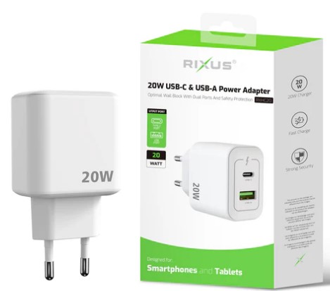 15W POWER ADAPTOR USB TYPE-C & USB-A Rixus